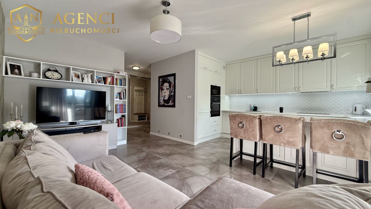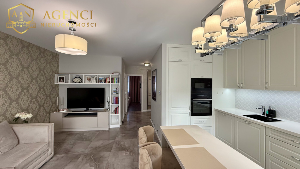 • Nowoczesna zabudowa kuchenna wraz z kompletnym sprzętem AGD,