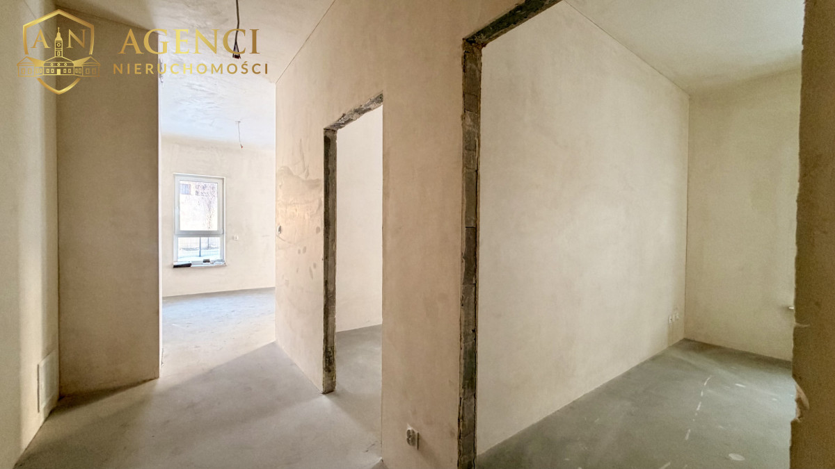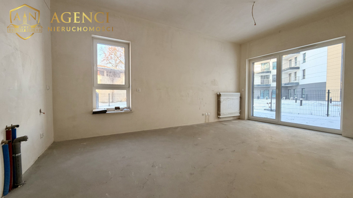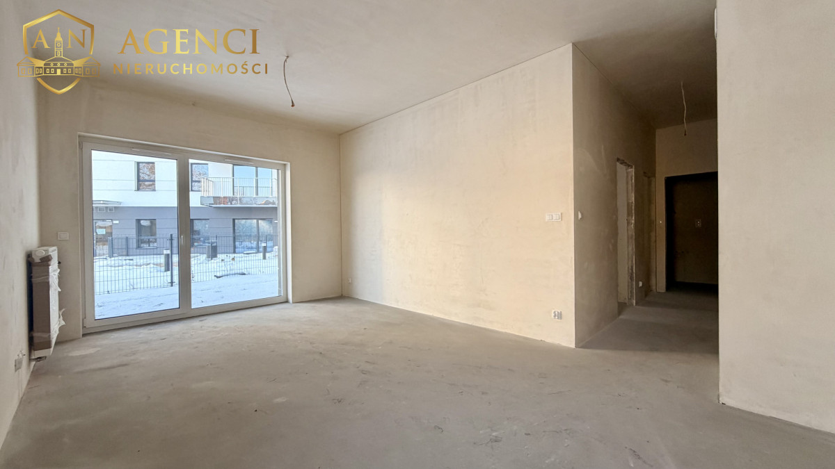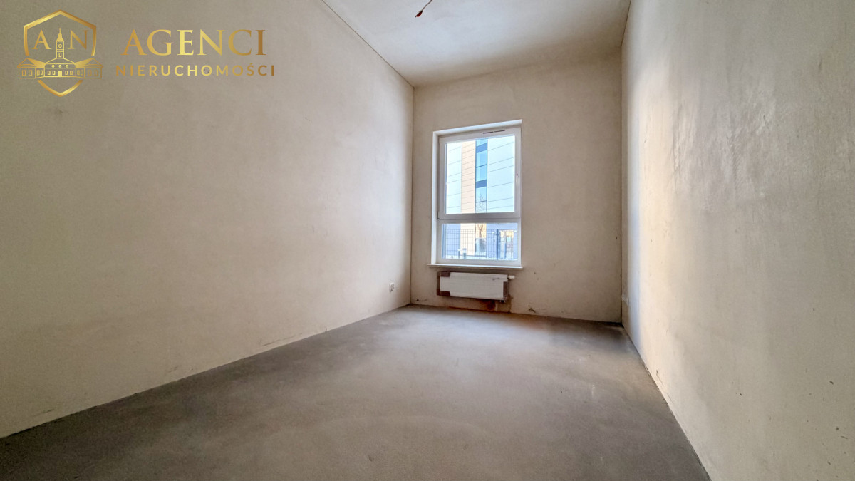 Nieruchomość w stanie developerskim. Składa się z korytarza, z salonu z aneksem z wyjściem na taras, 2 sypialni oraz łazienki z wc.