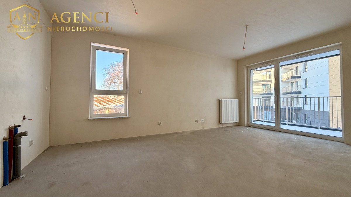 Nieruchomość w stanie developerskim. Składa się z korytarza, z salonu z aneksem z wyjściem na balkon, 2 sypialni oraz łazienki z wc.